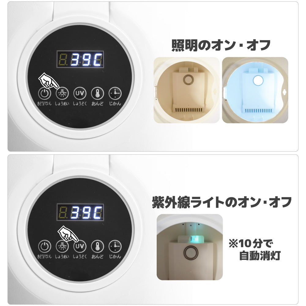 ◎UV消毒機能でドーム内を消毒、殺菌、消臭します。